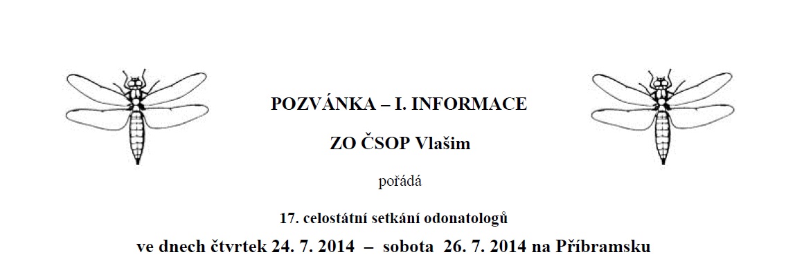 V roce 2014 budeme pokračovat v mapování málo odonatologicky prozkoumaných míst. Seminář se uskuteční na Příbramsku – dosud odonatologicky slabě probádané území mezi Dobříší a přehradou Orlík.