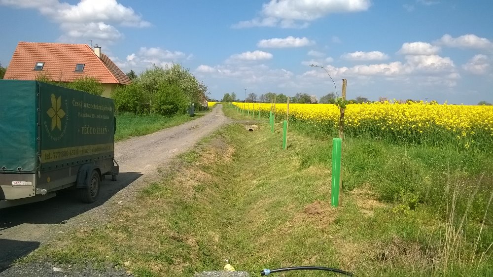 Výsadba nové aleje u obce Křížkový Újezdec