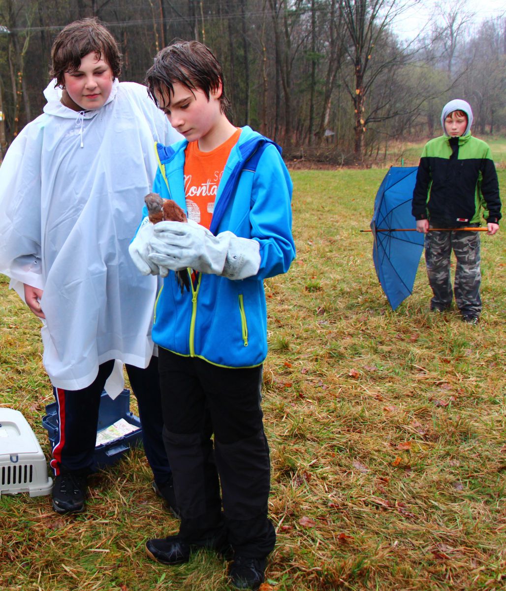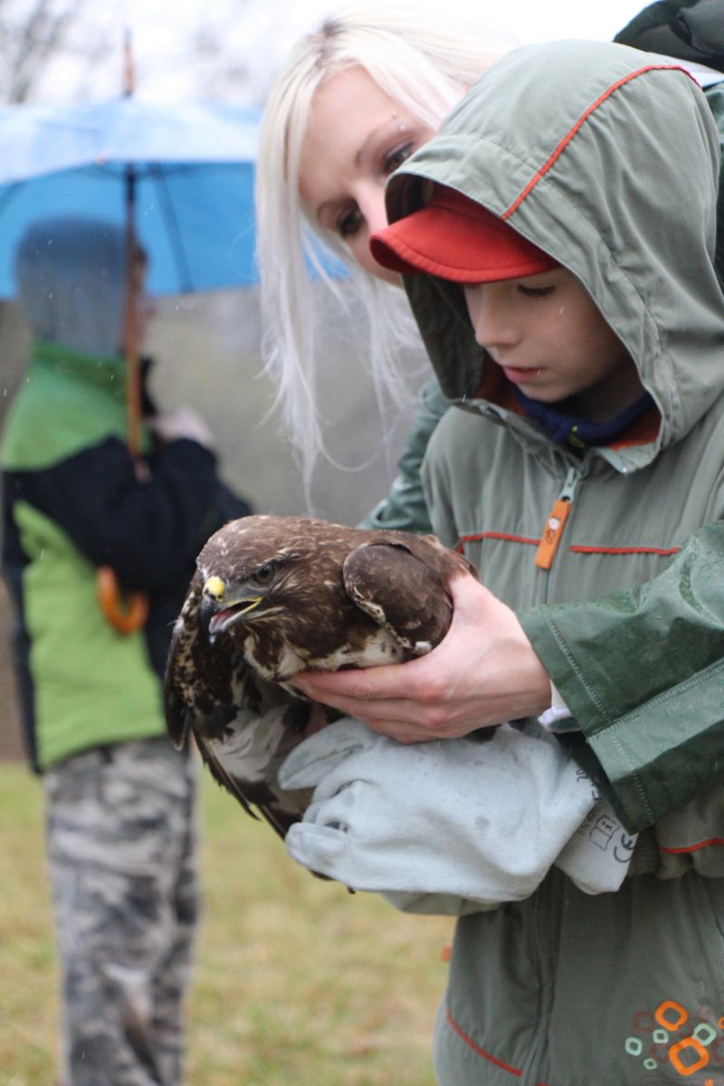 nadšenci, když je ani intenzivní liják neodradil od asistence při vypouštění dravých ptáků. Káně i poštolka strávily v záchranné stanici řadu měsíců následkem otřesu v případě káně a vyhladovění u poštolky.
