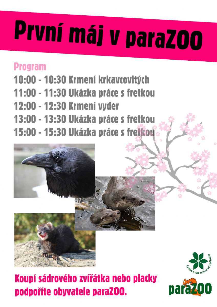 Srdečně Vás zveme na 1. máje do paraZOO. Uvidíte práci s ochočenou fretkou a krmení vyder a krkavcovitých ptáků.