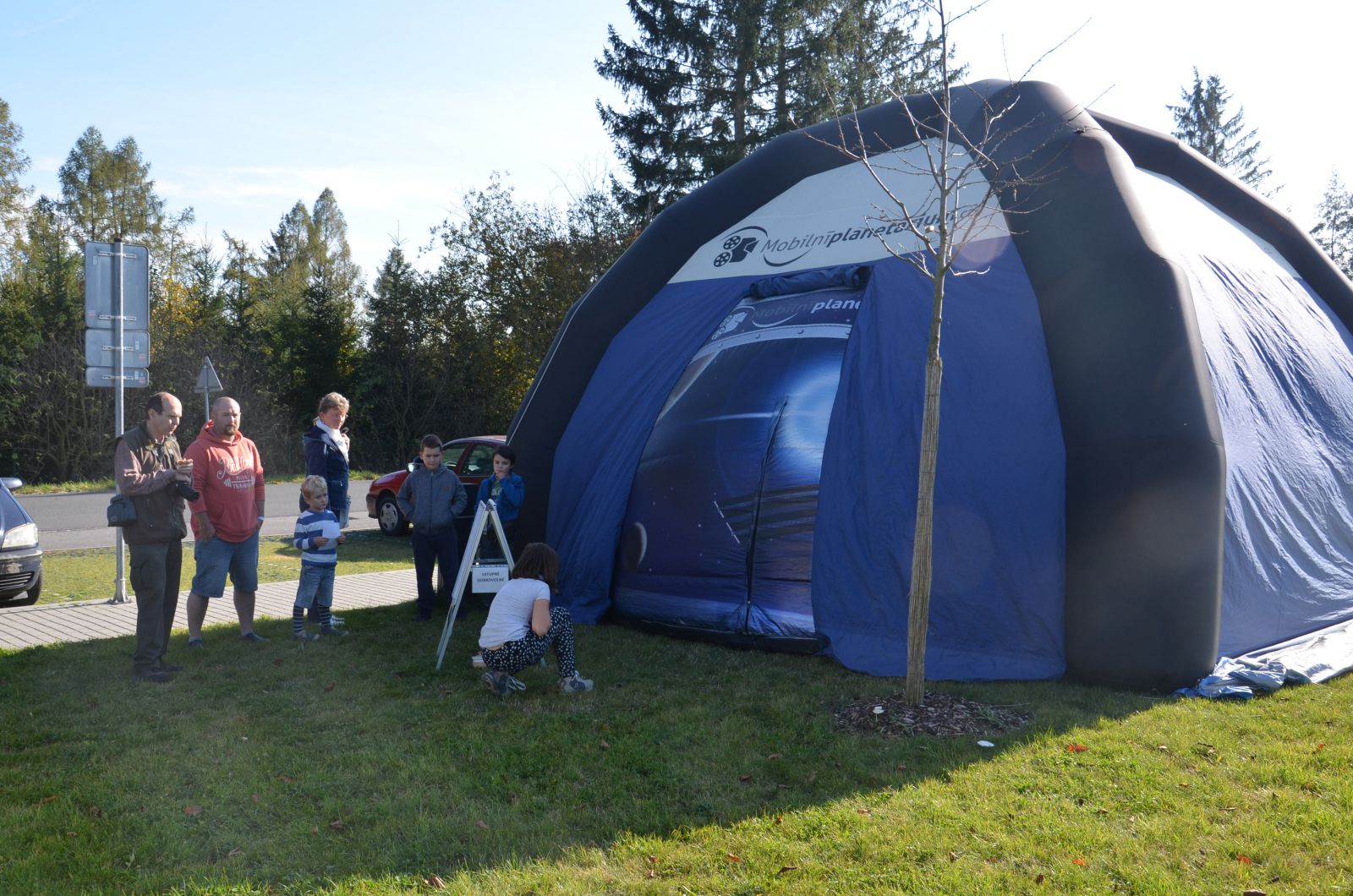 Aktivity nebyly jediným lákadlem, kromě nich byly ke zhlédnutí také filmy v mobilním planetáriu. A jak jinak než s vodní nebo stromovou tematikou. Planetárium přilákalo přes čtyřicet zvídavých.